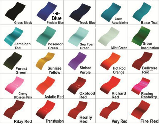 You will choose what color of powder-coating you want us to use on your tumbler from the chart below: