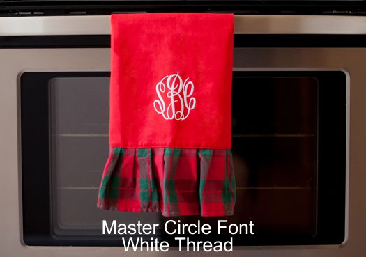 Our pictures above show close-ups of the each of our designs, and each Hand Towel is labeled with the font and thread color used on it if it is personalized. You will also see closeups of all of the fonts that are available.